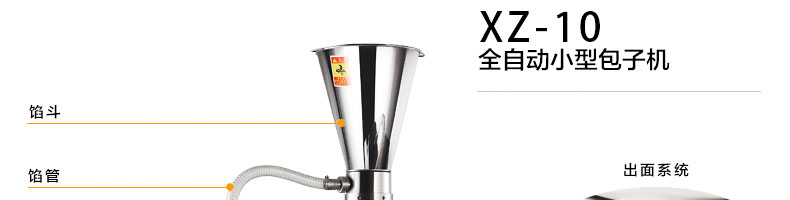 XZ-10型全自動(dòng)包子機(jī),可生產(chǎn)不同餡料的包子及南瓜餅、圓饅頭等各種包餡制品??缮a(chǎn)肉包、菜包、小籠包、豆沙包、奶黃包、云南破酥包等多種包餡類產(chǎn)品。適用于賓館、飯店、學(xué)校、機(jī)關(guān)企業(yè)食堂、饅頭或包子加工廠、早餐工程店及速凍食品廠等單位??蓾M足不同客戶群體。免費(fèi)提供工藝技術(shù)。