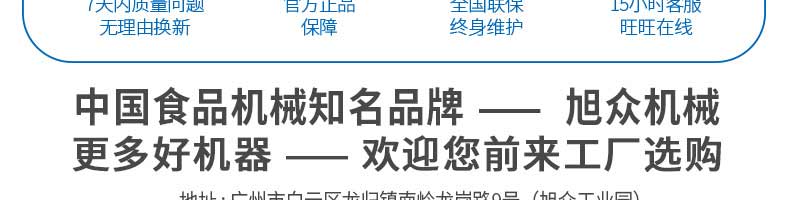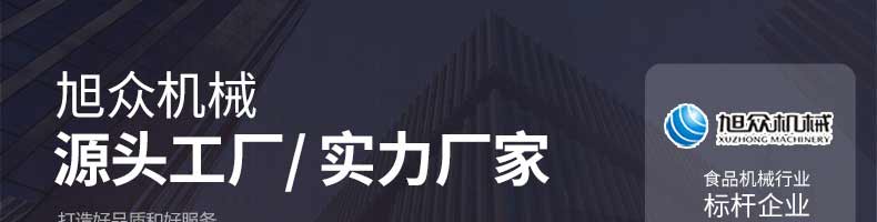廣州旭眾食品機械有限公司是一家集科研開發(fā),生產(chǎn)設(shè)計,營銷服務(wù)為一體的現(xiàn)代化生產(chǎn)企業(yè)。現(xiàn)代化生產(chǎn)車間,精湛制造技術(shù),所產(chǎn)機械歷經(jīng)市場重重考驗,不斷贏得海內(nèi)外客戶的贊譽。