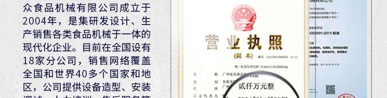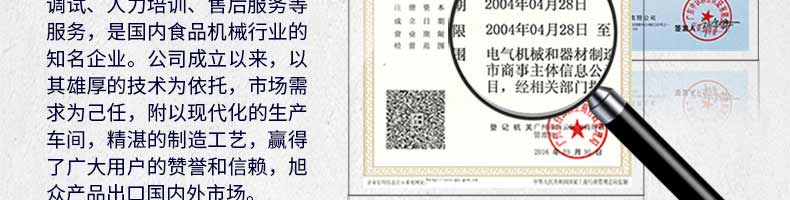 廣州旭眾食品機械有限公司是一家集科研開發(fā),生產(chǎn)設(shè)計,營銷服務(wù)為一體的現(xiàn)代化生產(chǎn)企業(yè)?,F(xiàn)代化生產(chǎn)車間,精湛制造技術(shù),所產(chǎn)機械歷經(jīng)市場重重考驗,不斷贏得海內(nèi)外客戶的贊譽。