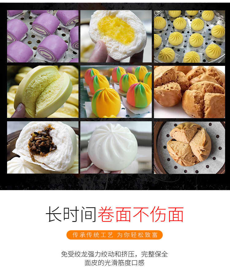 XZ-190智能型卷面式包子機,科技和工藝出乎想象不傷面筋,不斷面筋,薄厚調(diào)節(jié)自如可直接調(diào)節(jié)面皮的薄厚,所出產(chǎn)品外形大小統(tǒng)一,遠比手工制作美觀!