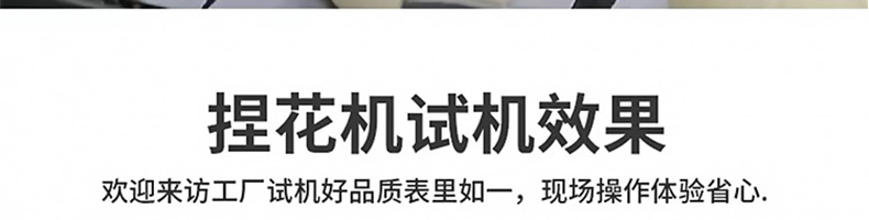 XZ-7200捏花機,一臺捏花機輕松解決:手工和面包餡/人工效率低,用人成本高等一系列問題一臺機器=10個人手工,24折捏花·外形美觀仿手工多道壓面卷面皮,卷面式包餡成型,制品表面光滑。