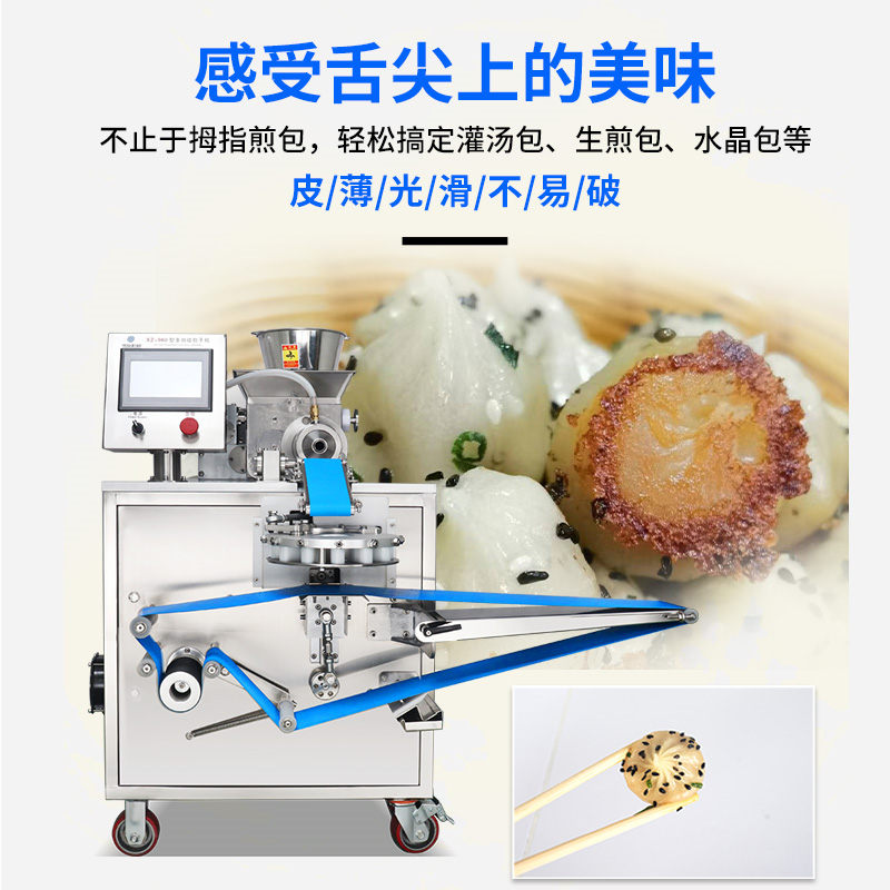XZ-960拇指煎包機,智能拇指煎包機,操作簡單、精準控制、快速成型、模擬人工。迷你煎包,手指留香。感受舌尖上的美味不止于拇指煎包,輕松搞定灌湯包、生煎包、水晶包等