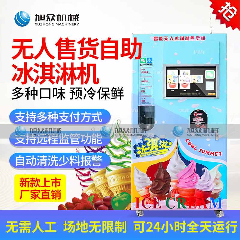 無人售貨冰淇淋機, 人工成本越來越高,無人店、無人售賣機必將是一個趨勢。簡單而又重復(fù)的勞動(售賣)必將被智能無人替代。無人售貨自助冰淇淋機支持多種支付方式,支持遠程監(jiān)管功能,支持預(yù)冷保鮮,支持多種口味混合,自動清洗少料報警。無需人工、場地?zé)o限制。