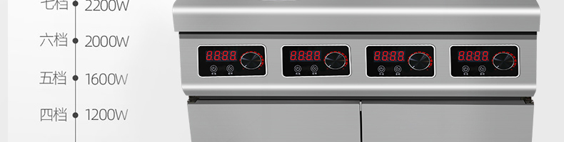 四頭柜式電磁爐,10檔調節(jié),滿足各種烹飪。3500W火力十足,輕松選擇合適火力。同時工作互不干擾單獨磁爐控制面板,設置不同大小檔數,同時工作,互不干擾。
