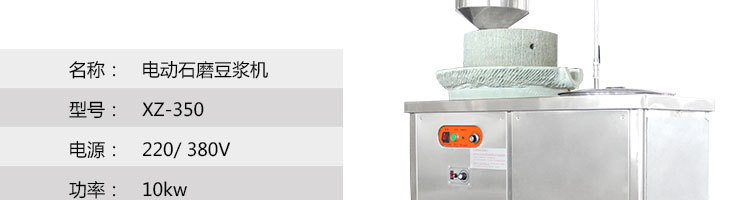 XZ-350型電動石磨豆?jié){機,適用于制作豆?jié){;豆?jié){還含有鐵、鈣等礦物質,尤其是其所含的鈣,雖不及豆腐,但比其他任何乳類都高,非常適合于各種人群,包括老人、成年人和青少年等等。