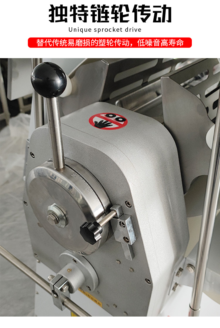 LSP-520酥皮機(jī),采用獨(dú)特的鏈輪傳動(dòng)替代了傳統(tǒng)易磨損的塑輪傳動(dòng),低噪音,高壽命滾輪經(jīng)過(guò)特殊工藝處理,不粘面,不易刮傷適用于手撕面包、羊角面包、蛋撻、老婆餅、千層餅,等酥皮類(lèi)食品,也可用于輾壓面團(tuán)。
