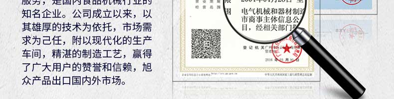 廣州旭眾食品機械有限公司是一家集科研開發(fā),生產(chǎn)設(shè)計,營銷服務(wù)為一體的現(xiàn)代化生產(chǎn)企業(yè)?,F(xiàn)代化生產(chǎn)車間,精湛制造技術(shù),所產(chǎn)機械歷經(jīng)市場重重考驗,不斷贏得海內(nèi)外客戶的贊譽。