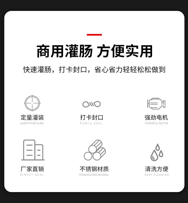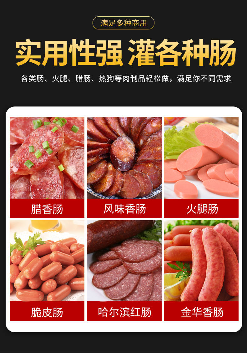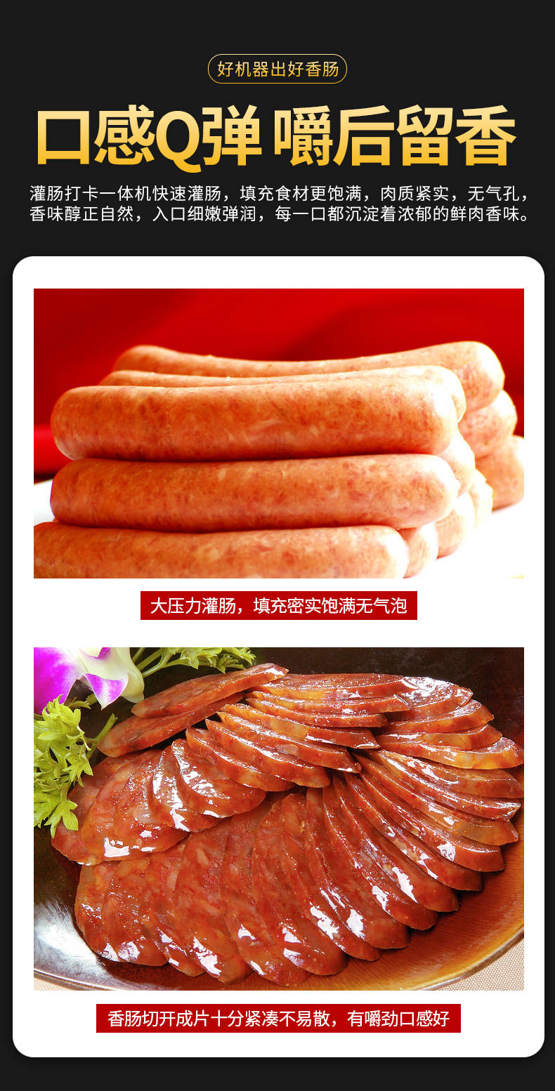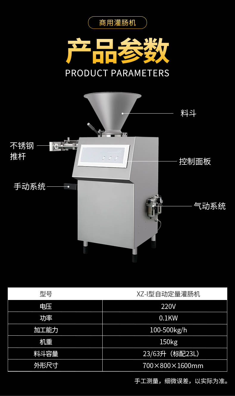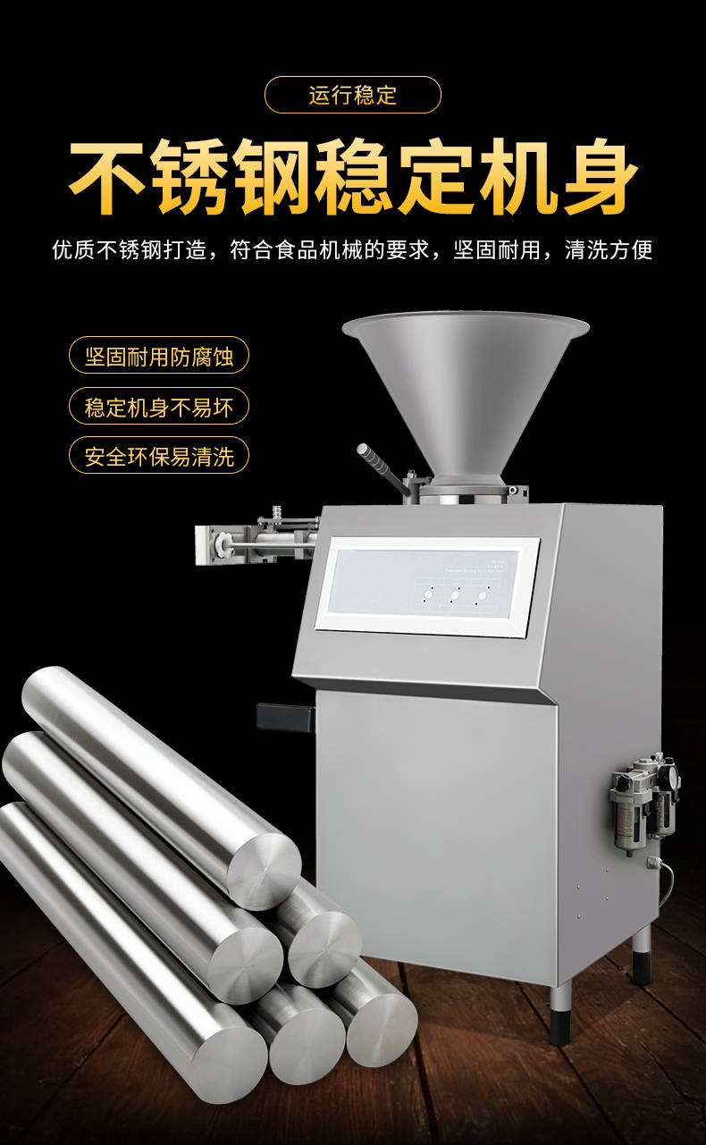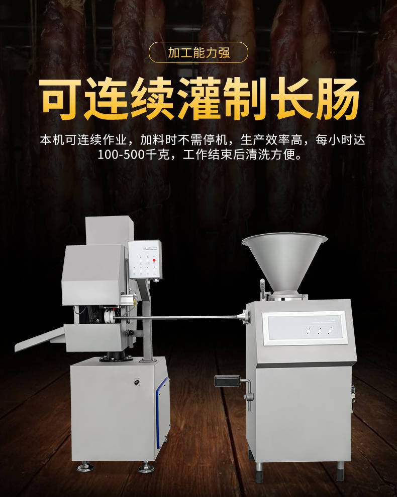 XZ-I型自動定量灌腸機(jī),使用優(yōu)質(zhì)不銹鋼制造,符合食品機(jī)械的要求,只需1人操作,特別適合中小型肉食加工廠使用,以各種畜禽類肉糜為原料的香腸、火腿腸、熱狗等天然腸衣、蛋白腸衣、煙熏腸衣等制品,可以灌制定重量單腸,也可連續(xù)灌制長腸。