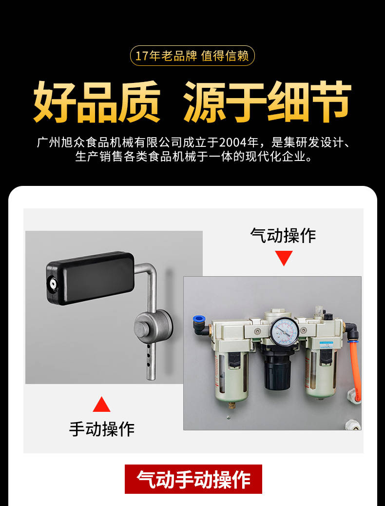 廣州旭眾食品機(jī)械有限公司是一家集科研開發(fā),生產(chǎn)設(shè)計,營銷服務(wù)為一體的現(xiàn)代化生產(chǎn)企業(yè)。現(xiàn)代化生產(chǎn)車間,精湛制造技術(shù),所產(chǎn)機(jī)械歷經(jīng)市場重重考驗,不斷贏得海內(nèi)外客戶的贊譽(yù)。