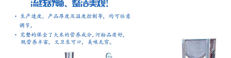 SZ-HF-500高效節(jié)能河粉機,生產速度、產品厚度及溫度控制等,均可任意調節(jié)