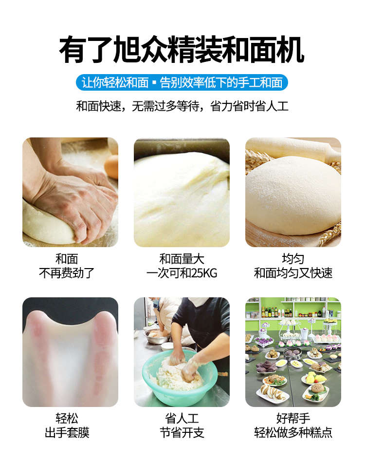 SZ-25精裝和面機,全自動和面,電動精裝和面機仿手工和面/快速均勻/面團勁道。有了旭眾精裝和面機讓你輕松和面,告別效率低下的手工和面和面快速,無需過多等待,省力省時省人工。