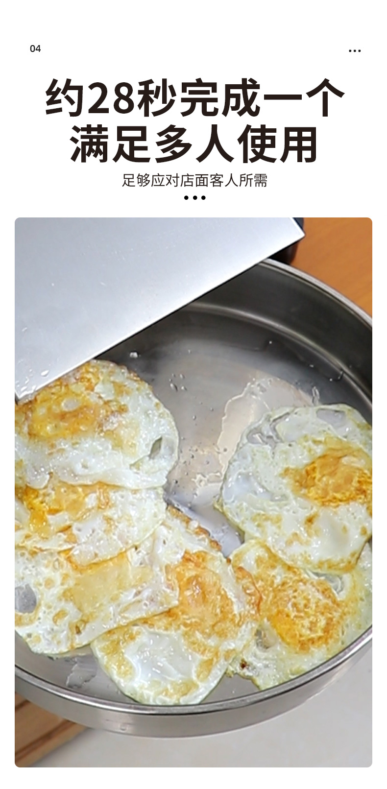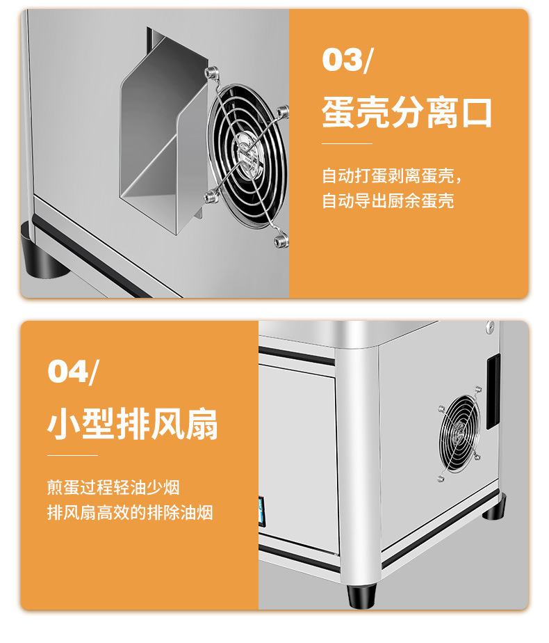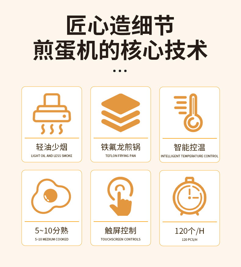 商用全自動智能煎蛋機(jī),匠心造細(xì)節(jié)煎蛋機(jī)的核心技術(shù),輕油少煙、5~10分熟、鐵氟龍煎鍋、觸屏控制、智能控溫??谖秱€性化五分/七分/十分熟,智能控溫上下鍋恒溫煎烤。