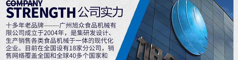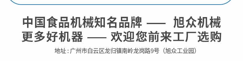 廣州旭眾食品機(jī)械有限公司是一家集科研開發(fā),生產(chǎn)設(shè)計(jì),營(yíng)銷服務(wù)為一體的現(xiàn)代化生產(chǎn)企業(yè)。現(xiàn)代化生產(chǎn)車間,精湛制造技術(shù),所產(chǎn)機(jī)械歷經(jīng)市場(chǎng)重重考驗(yàn),不斷贏得海內(nèi)外客戶的贊譽(yù)。