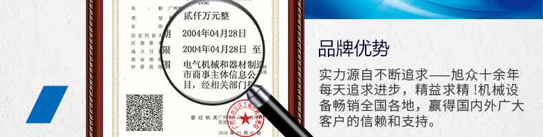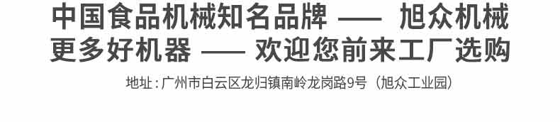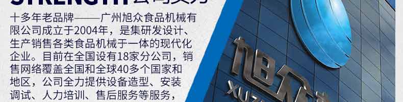廣州旭眾食品機械有限公司是一家集科研開發(fā),生產(chǎn)設計,營銷服務為一體的現(xiàn)代化生產(chǎn)企業(yè)?,F(xiàn)代化生產(chǎn)車間,精湛制造技術,所產(chǎn)機械歷經(jīng)市場重重考驗,不斷贏得海內(nèi)外客戶的贊譽。