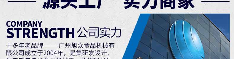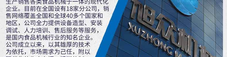廣州旭眾食品機(jī)械有限公司是一家集科研開(kāi)發(fā),生產(chǎn)設(shè)計(jì),營(yíng)銷(xiāo)服務(wù)為一體的現(xiàn)代化生產(chǎn)企業(yè)?,F(xiàn)代化生產(chǎn)車(chē)間,精湛制造技術(shù),所產(chǎn)機(jī)械歷經(jīng)市場(chǎng)重重考驗(yàn),不斷贏得海內(nèi)外客戶(hù)的贊譽(yù)。