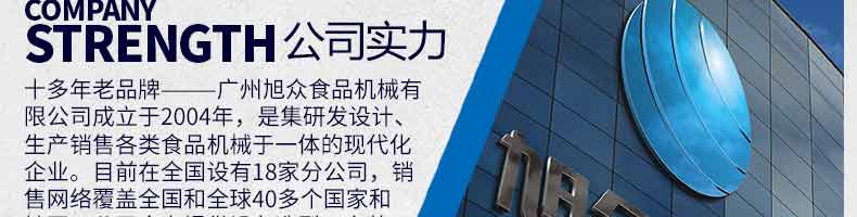 廣州旭眾食品機(jī)械有限公司是一家集科研開發(fā),生產(chǎn)設(shè)計(jì),營(yíng)銷服務(wù)為一體的現(xiàn)代化生產(chǎn)企業(yè)。現(xiàn)代化生產(chǎn)車間,精湛制造技術(shù),所產(chǎn)機(jī)械歷經(jīng)市場(chǎng)重重考驗(yàn),不斷贏得海內(nèi)外客戶的贊譽(yù)。