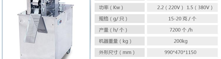 JGB-120-5B型餃子機(jī),本機(jī)是一款可生產(chǎn)各種肉餡、肉菜混合餡、全菜餡及其他種餡餃子的設(shè)備。一機(jī)多用途,只要更換模具,就可制作不同的食品,如春卷、餛飩、咖喱角、鍋貼等。適用于賓館、飯店、餐廳、團(tuán)體食堂加工,幼兒園、速凍餃子生產(chǎn)。