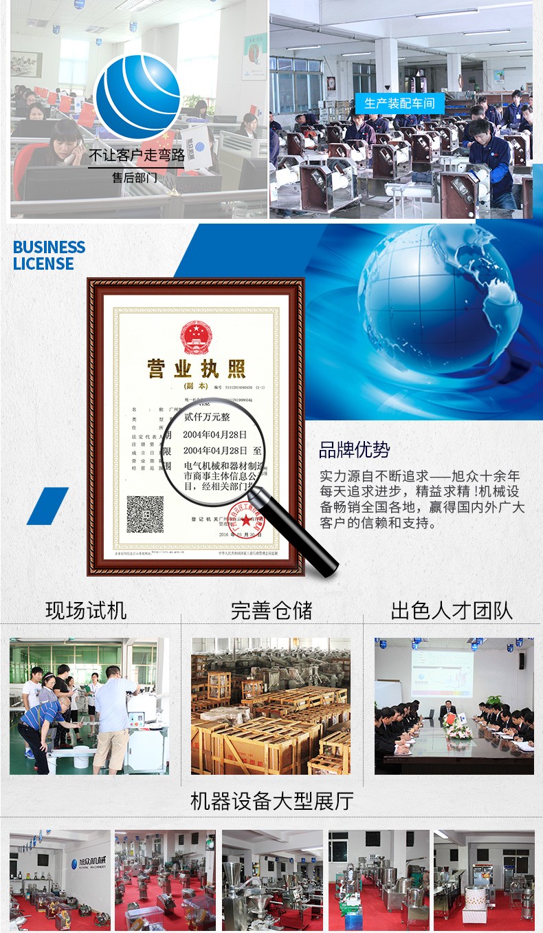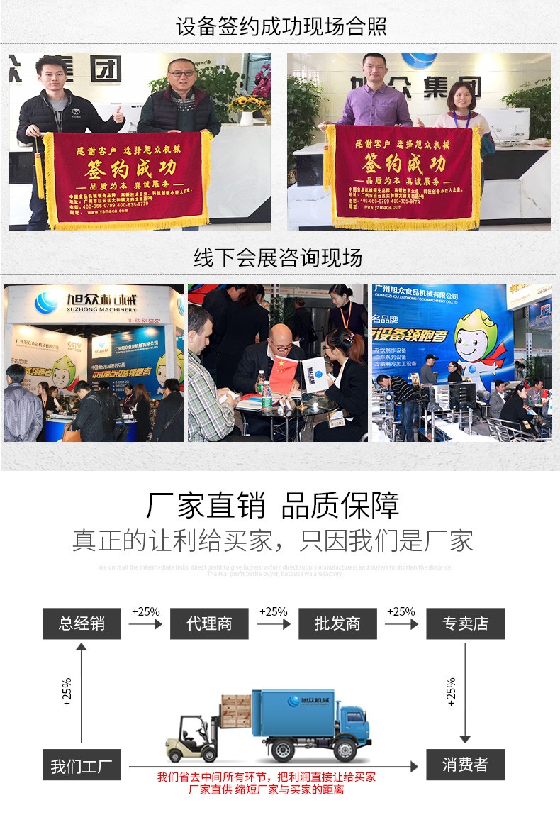 廣州旭眾食品機(jī)械有限公司是一家集科研開發(fā),生產(chǎn)設(shè)計(jì),營銷服務(wù)為一體的現(xiàn)代化生產(chǎn)企業(yè)?,F(xiàn)代化生產(chǎn)車間,精湛制造技術(shù),所產(chǎn)機(jī)械歷經(jīng)市場重重考驗(yàn),不斷贏得海內(nèi)外客戶的贊譽(yù)。
