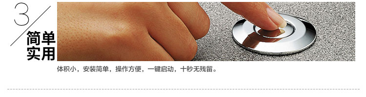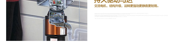 ACLQ37-廚房垃圾處理器,采用先進的研磨系統(tǒng),采用特殊合金錘粉技術(shù),能根據(jù)垃圾的強度,自動調(diào)節(jié)工作位置,處理垃圾的范圍和細(xì)度優(yōu)良。能夠有效地將食物垃圾研磨成細(xì)小顆粒,直接從下水管道排出,從而實現(xiàn)及時方便快捷的廚房清潔,滿足現(xiàn)代健康家居的要求。