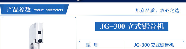 JG300 立式鋸骨機(jī),適用于各類(lèi)骨頭,冷凍肉,帶魚(yú)骨,冰塊,冷凍魚(yú)的分割。采用全不銹鋼材料制作,具有工作效率高,操作安全的特點(diǎn)。廣泛適用于食品加工廠,屠宰場(chǎng),肉類(lèi)加工廠等