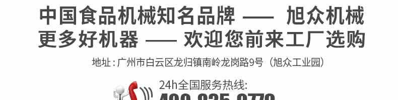 廣州旭眾食品機(jī)械有限公司是一家集科研開發(fā),生產(chǎn)設(shè)計,營銷服務(wù)為一體的現(xiàn)代化生產(chǎn)企業(yè)?,F(xiàn)代化生產(chǎn)車間,精湛制造技術(shù),所產(chǎn)機(jī)械歷經(jīng)市場重重考驗(yàn),不斷贏得海內(nèi)外客戶的贊譽(yù)。