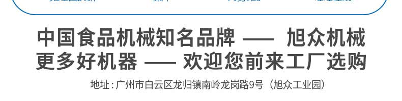 廣州旭眾食品機械有限公司是一家集科研開發(fā),生產(chǎn)設(shè)計,營銷服務為一體的現(xiàn)代化生產(chǎn)企業(yè)?,F(xiàn)代化生產(chǎn)車間,精湛制造技術(shù),所產(chǎn)機械歷經(jīng)市場重重考驗,不斷贏得海內(nèi)外客戶的贊譽。