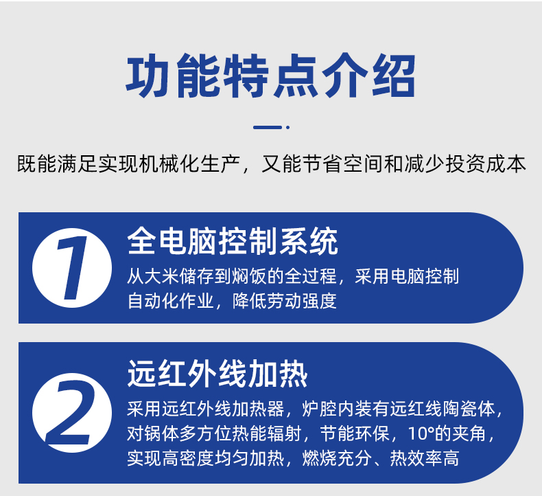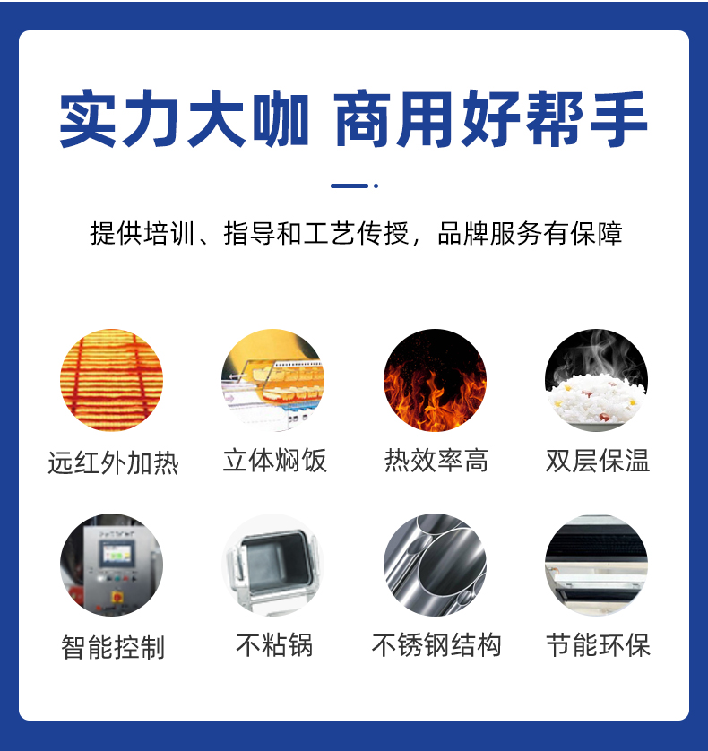 機(jī)械手全自動(dòng)米飯生產(chǎn)線,實(shí)力大咖 商用好幫手,提供培訓(xùn)、指導(dǎo)和工藝傳授,品牌服務(wù)有保障。遠(yuǎn)紅外加熱、智能控制、立體燜飯、不粘鍋、熱效率高、不銹鋼結(jié)構(gòu)、雙層保溫、節(jié)能環(huán)保。