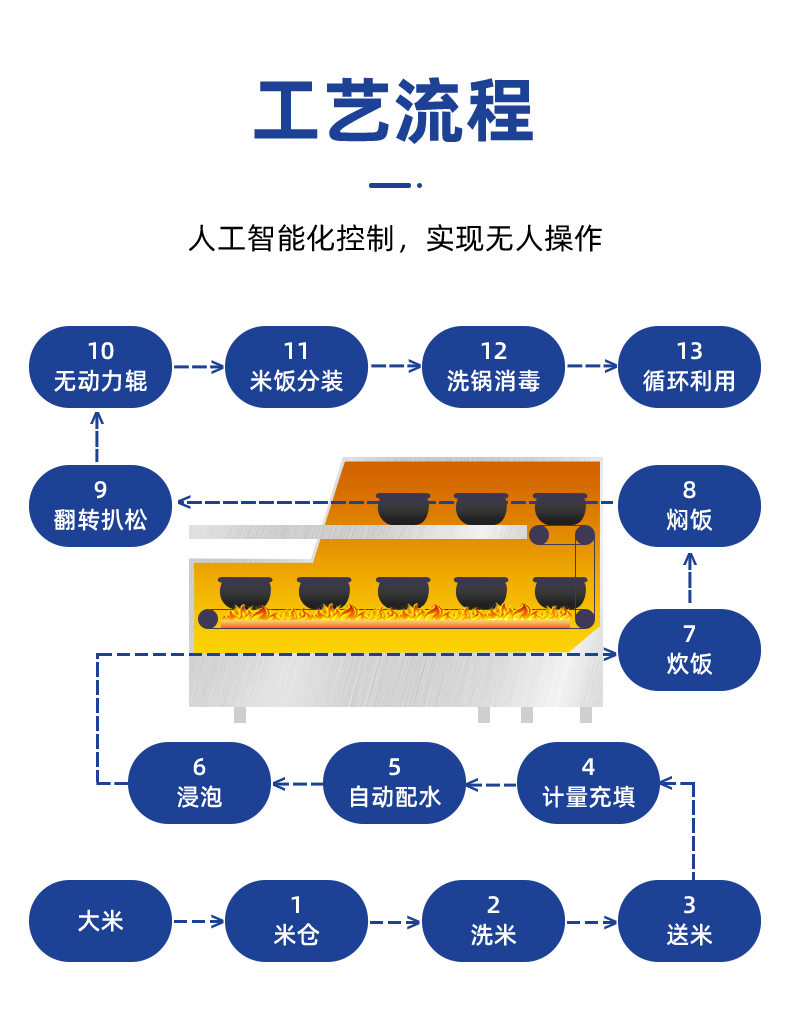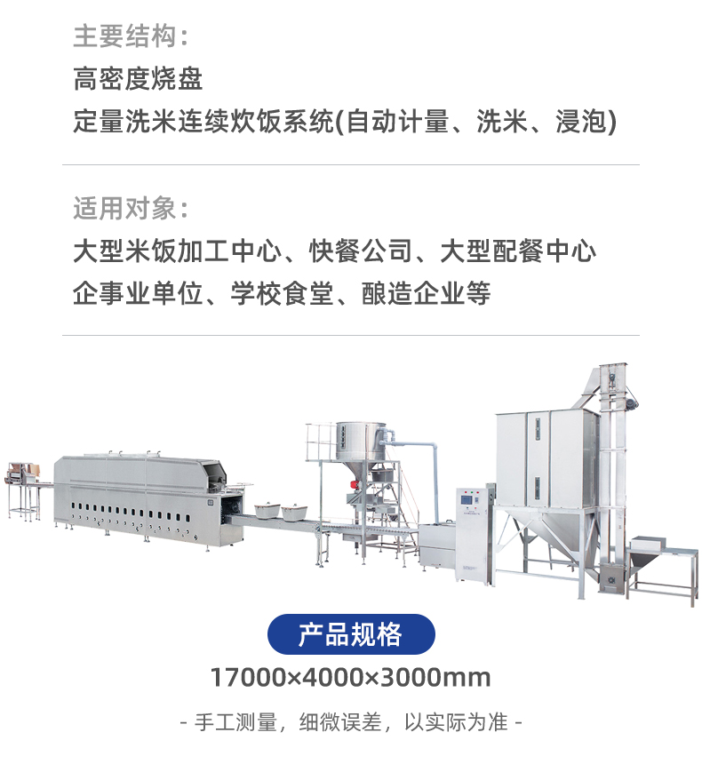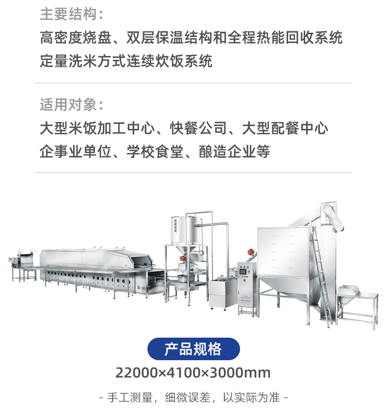 米飯生產(chǎn)線,主要結(jié)構(gòu):不銹鋼箱體,密閉不銹鋼飯盤,自動加熱循環(huán)系統(tǒng)。適用對象:大型米飯加工中心、快餐公司、大型配餐中心企事業(yè)單位、學校食堂、釀造企業(yè)等。實力大咖商用好幫手。提供培訓、指導和工藝傳授,品牌服務有保障。