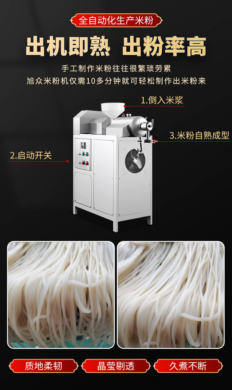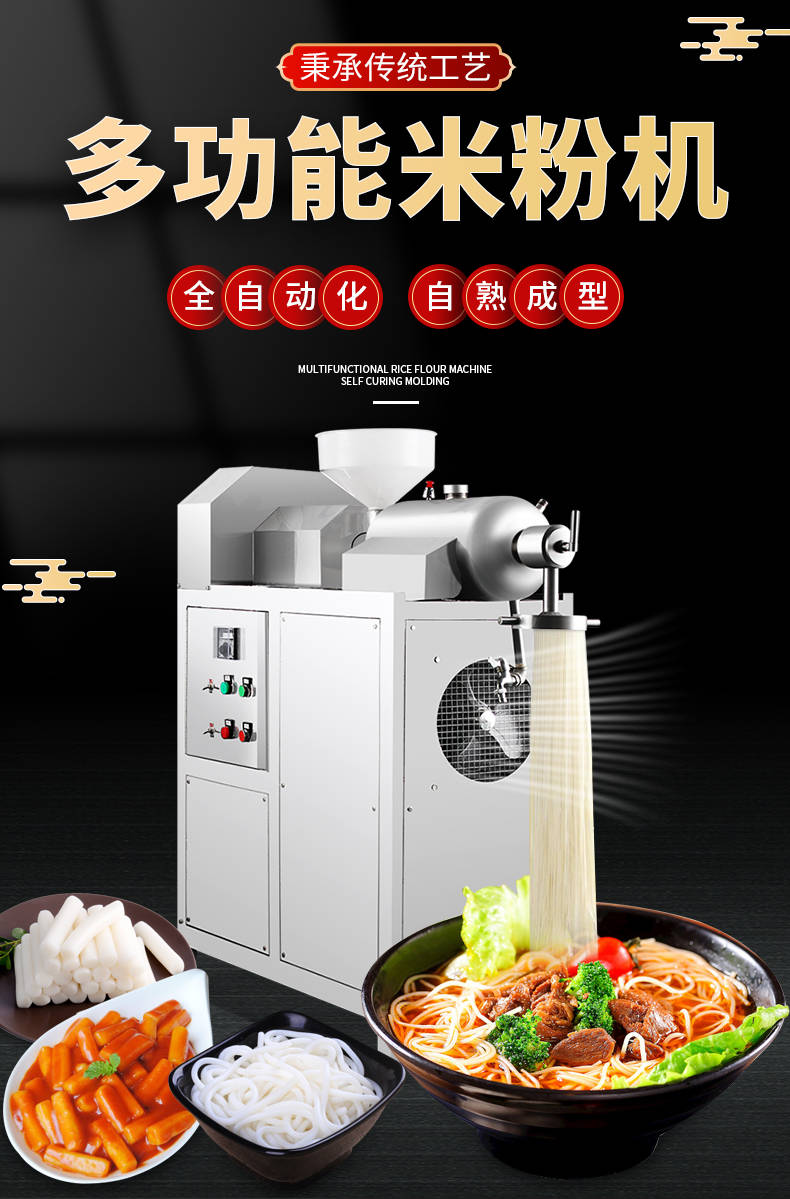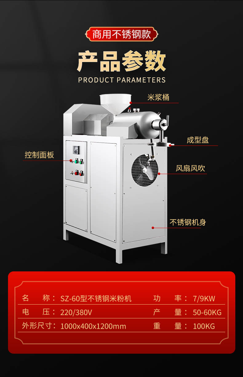SZ-60不銹鋼米粉機,可生產(chǎn)米粉、米線、桂林米粉、過橋米線、年糕、糍粑等產(chǎn)品。各種形狀都可生產(chǎn)(圓、扁),加工食品外表光滑,厚薄、寬窄、粗細(xì)均勻可調(diào),筋軟適度,有彈性,口感柔軟、味道純正。