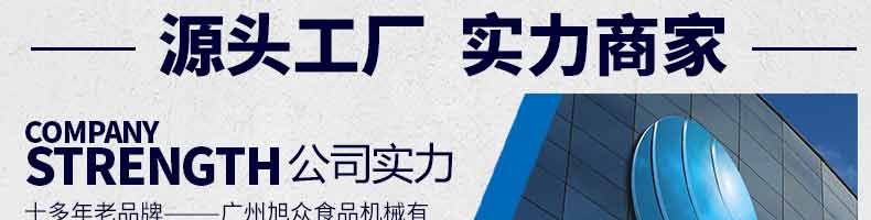 廣州旭眾食品機(jī)械有限公司是一家集科研開(kāi)發(fā),生產(chǎn)設(shè)計(jì),營(yíng)銷(xiāo)服務(wù)為一體的現(xiàn)代化生產(chǎn)企業(yè)。現(xiàn)代化生產(chǎn)車(chē)間,精湛制造技術(shù),所產(chǎn)機(jī)械歷經(jīng)市場(chǎng)重重考驗(yàn),不斷贏得海內(nèi)外客戶的贊譽(yù)。