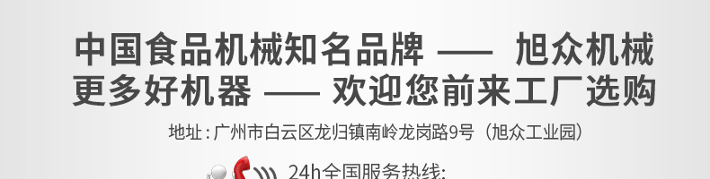 廣州旭眾食品機(jī)械有限公司是一家集科研開發(fā),生產(chǎn)設(shè)計(jì),營銷服務(wù)為一體的現(xiàn)代化生產(chǎn)企業(yè)?,F(xiàn)代化生產(chǎn)車間,精湛制造技術(shù),所產(chǎn)機(jī)械歷經(jīng)市場(chǎng)重重考驗(yàn),不斷贏得海內(nèi)外客戶的贊譽(yù)。