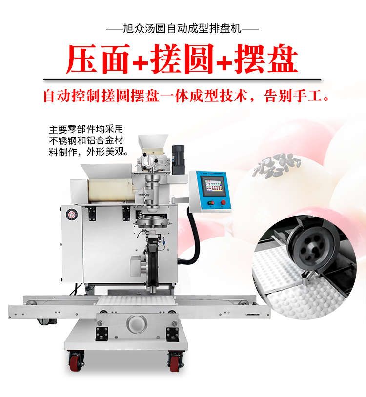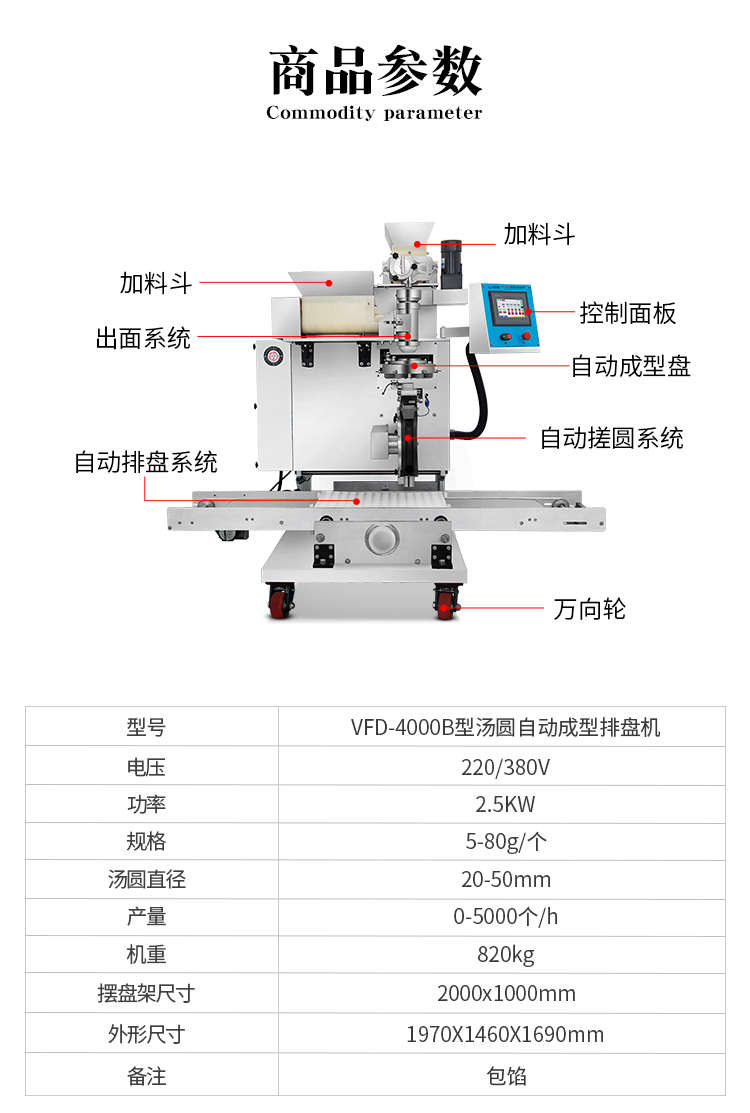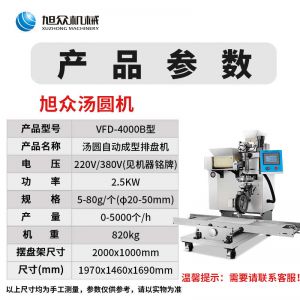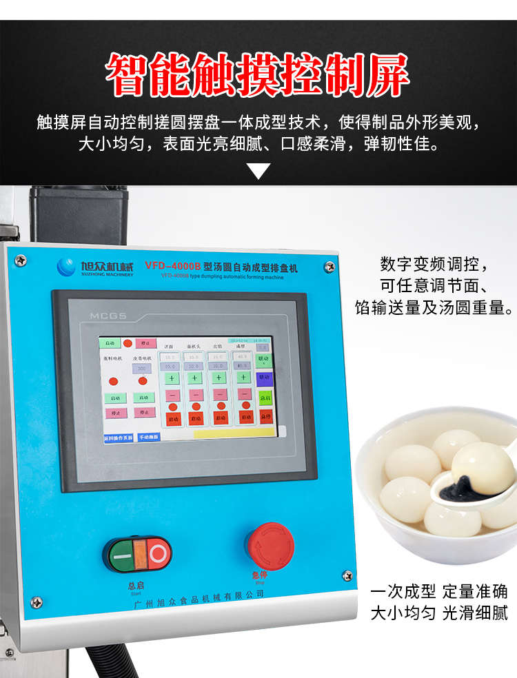 VFD-4000B湯圓機(jī),定量準(zhǔn)確自動(dòng)搓圓排盤成型大小均勻口感柔滑??芍谱鞲魇桨W食品,如湯圓、芝麻球、豆沙包、南瓜餅、奶黃包等