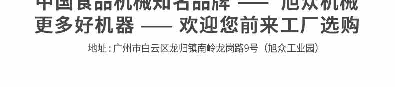 廣州旭眾食品機(jī)械有限公司是一家集科研開發(fā),生產(chǎn)設(shè)計(jì),營(yíng)銷服務(wù)為一體的現(xiàn)代化生產(chǎn)企業(yè)。現(xiàn)代化生產(chǎn)車間,精湛制造技術(shù),所產(chǎn)機(jī)械歷經(jīng)市場(chǎng)重重考驗(yàn),不斷贏得海內(nèi)外客戶的贊譽(yù)。