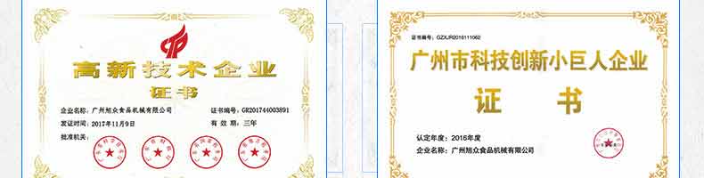 廣州旭眾食品機械有限公司是一家集科研開發(fā),生產(chǎn)設(shè)計,營銷服務(wù)為一體的現(xiàn)代化生產(chǎn)企業(yè)?,F(xiàn)代化生產(chǎn)車間,精湛制造技術(shù),所產(chǎn)機械歷經(jīng)市場重重考驗,不斷贏得海內(nèi)外客戶的贊譽。