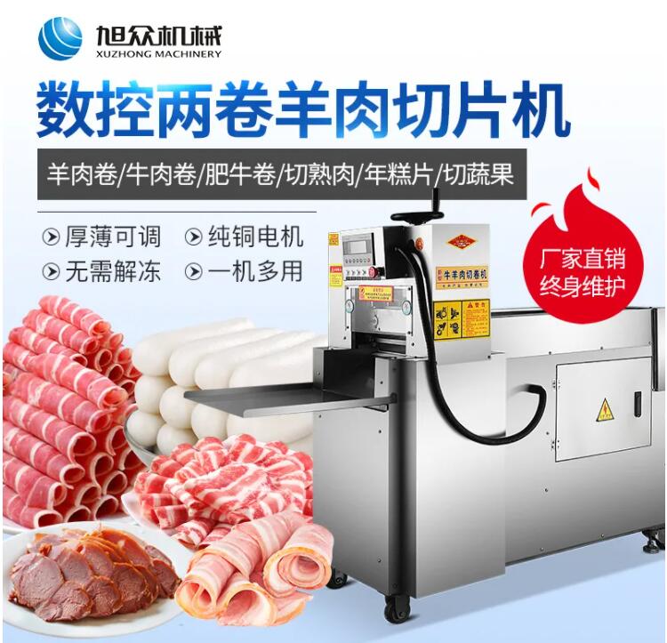 旭眾凍肉切片機(jī),是模擬手工切片的原理,采用變速箱傳動(dòng),自動(dòng)進(jìn)料、自動(dòng)切片,一次可切2卷(4卷),羊肉或肥牛。