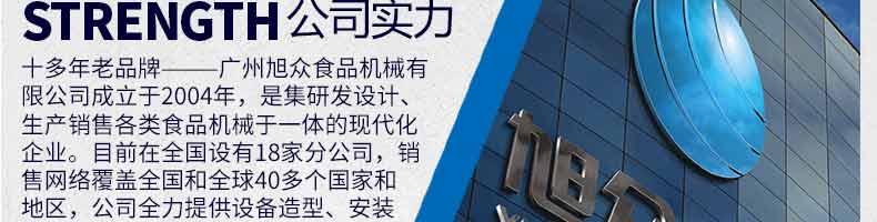 廣州旭眾食品機(jī)械有限公司是一家集科研開發(fā),生產(chǎn)設(shè)計(jì),營銷服務(wù)為一體的現(xiàn)代化生產(chǎn)企業(yè)。現(xiàn)代化生產(chǎn)車間,精湛制造技術(shù),所產(chǎn)機(jī)械歷經(jīng)市場重重考驗(yàn),不斷贏得海內(nèi)外客戶的贊譽(yù)。