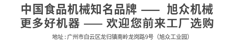 廣州旭眾食品機械有限公司是一家集科研開發(fā),生產(chǎn)設(shè)計,營銷服務(wù)為一體的現(xiàn)代化生產(chǎn)企業(yè)?,F(xiàn)代化生產(chǎn)車間,精湛制造技術(shù),所產(chǎn)機械歷經(jīng)市場重重考驗,不斷贏得海內(nèi)外客戶的贊譽。