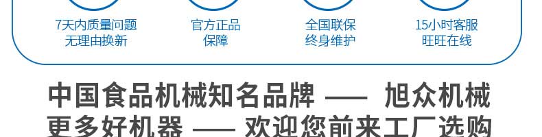 廣州旭眾食品機(jī)械有限公司是一家集科研開發(fā),生產(chǎn)設(shè)計,營銷服務(wù)為一體的現(xiàn)代化生產(chǎn)企業(yè)。現(xiàn)代化生產(chǎn)車間,精湛制造技術(shù),所產(chǎn)機(jī)械歷經(jīng)市場重重考驗,不斷贏得海內(nèi)外客戶的贊譽(yù)。