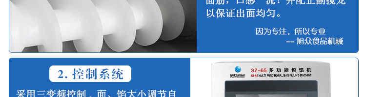 廣州旭眾食品機械有限公司是一家集科研開發(fā),生產(chǎn)設(shè)計,營銷服務(wù)為一體的現(xiàn)代化生產(chǎn)企業(yè)。現(xiàn)代化生產(chǎn)車間,精湛制造技術(shù),所產(chǎn)機械歷經(jīng)市場重重考驗,不斷贏得海內(nèi)外客戶的贊譽。