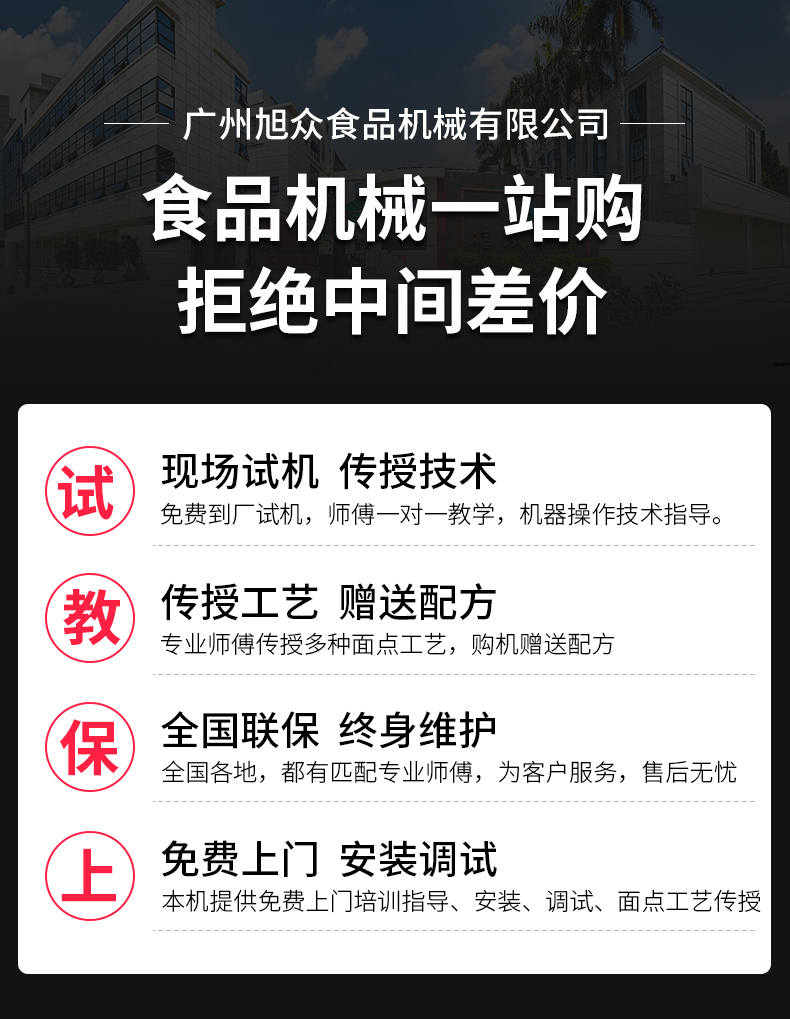 廣州旭眾食品機(jī)械有限公司是一家集科研開發(fā),生產(chǎn)設(shè)計,營銷服務(wù)為一體的現(xiàn)代化生產(chǎn)企業(yè)。現(xiàn)代化生產(chǎn)車間,精湛制造技術(shù),所產(chǎn)機(jī)械歷經(jīng)市場重重考驗,不斷贏得海內(nèi)外客戶的贊譽。