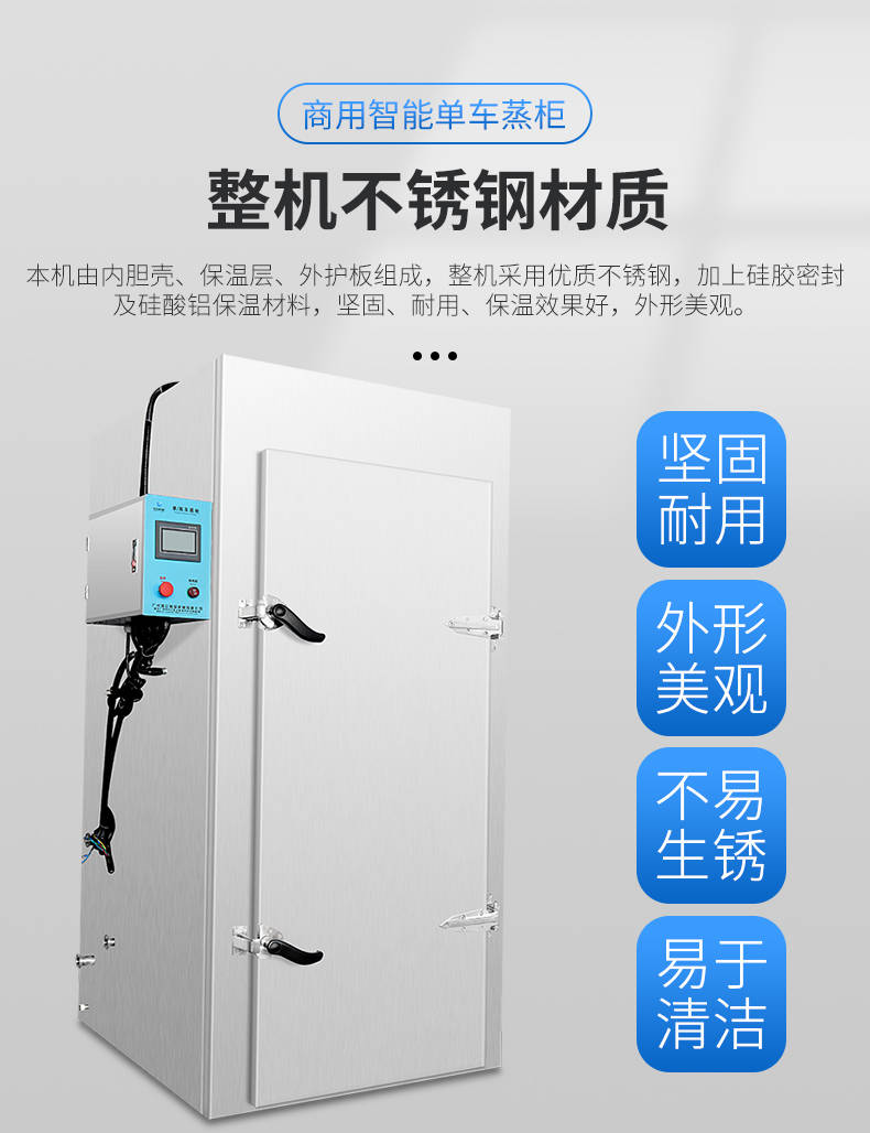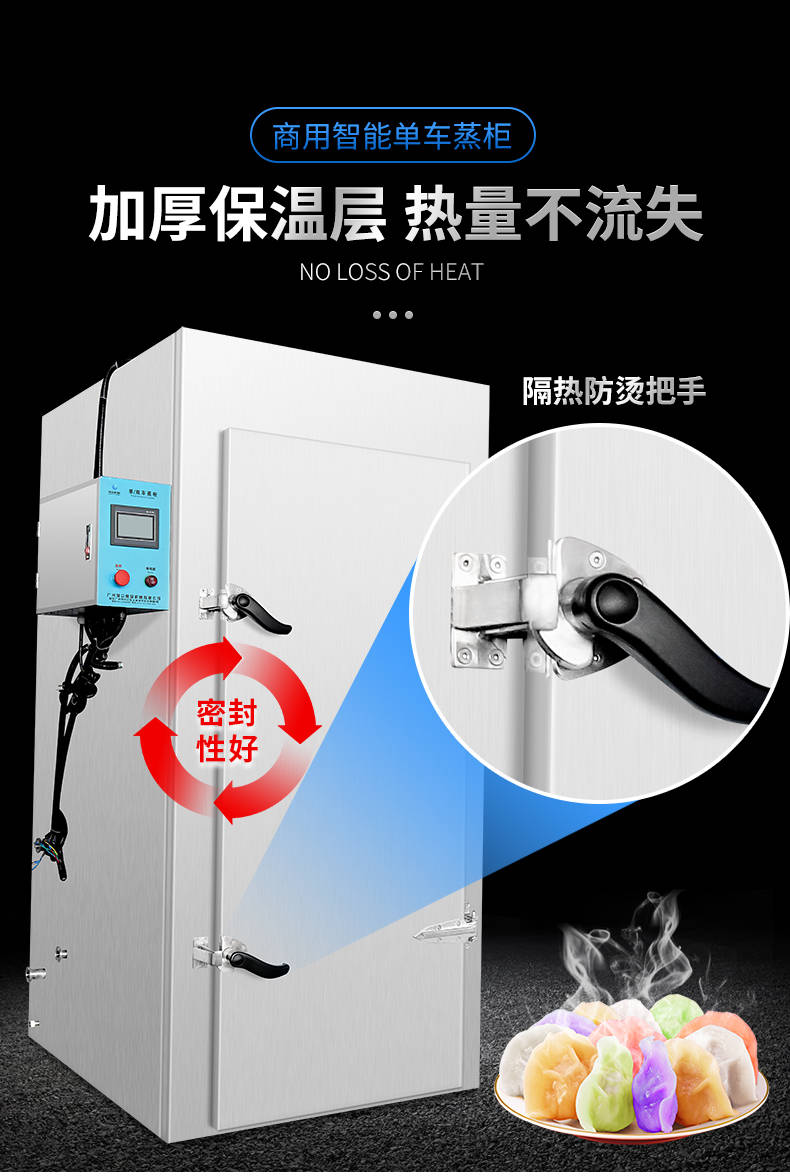 單車蒸柜,整機(jī)不銹鋼材質(zhì)本機(jī)由內(nèi)膽殼、保溫層、外護(hù)板組成,整機(jī)采用優(yōu)質(zhì)不銹鋼,加上硅膠密封及硅酸鋁保溫材料,堅(jiān)固、耐用、保溫效果好,外形美觀。循環(huán)均勻發(fā)熱,專門用于發(fā)熱管干燒空氣,溫度任意調(diào)節(jié),讓食物口感怡到好吃