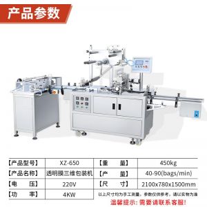 XZ-650包裝機,三維包裝機,全自動化操作出膜、切膜、包膜、熱封一次完成??蓮V泛應(yīng)用多種產(chǎn)品,適用包裝的產(chǎn)品有食品、撲克牌、香煙盒化妝品、日用品、文具用品等類型產(chǎn)品。