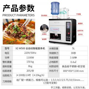 全自動商用快速出面電動素面濕面M500臺式制面機器,20秒全自動出面,全程無需看管。一鍵出面,面做好,自動停。均勻滴漏加水系統(tǒng),水面比例把握更好。自動滴漏加水系統(tǒng),運作過程加水更均勻,適量控水,面條更有嚼勁。