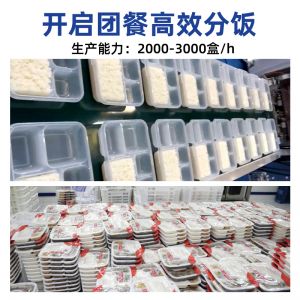 米飯分裝機(jī),適用多場(chǎng)合大型米飯加工中心、快餐公司、大型配餐中心企事業(yè)單位、學(xué)校食堂、釀造企業(yè)。米飯定量分裝,自動(dòng)完成分飯和計(jì)量,精準(zhǔn)飯量。米飯先扒松再分盒,能將米飯扒松分盒,使米飯更加松軟可口。