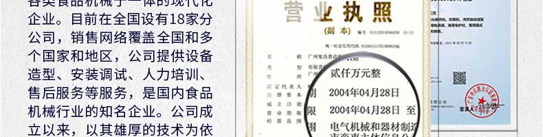 廣州旭眾食品機(jī)械有限公司是一家集科研開發(fā),生產(chǎn)設(shè)計(jì),營銷服務(wù)為一體的現(xiàn)代化生產(chǎn)企業(yè)?,F(xiàn)代化生產(chǎn)車間,精湛制造技術(shù),所產(chǎn)機(jī)械歷經(jīng)市場重重考驗(yàn),不斷贏得海內(nèi)外客戶的贊譽(yù)。