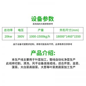全自動大型葉菜清洗線,自動化程度高、整線設(shè)計合理、節(jié)約人工降低生產(chǎn)成本、外形美觀大方。主要用于葉菜加工,整線自動化凈菜生產(chǎn)此線將切割、清洗、風(fēng)干設(shè)備連接成線,適合芹菜、韭菜菠菜、大白菜高麗菜、大蔥等葉菜類蔬菜加工生產(chǎn)